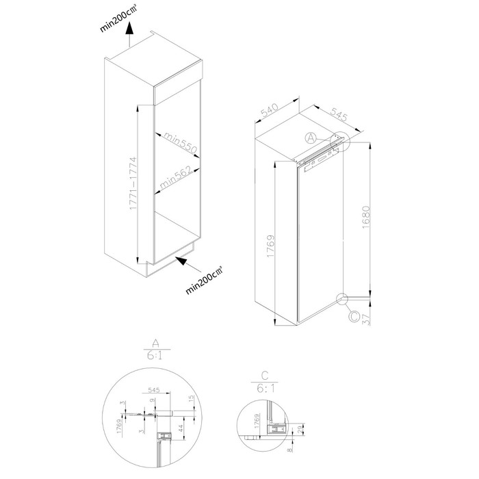 Встраиваемый морозильник HIBERG FRB-30 NFW обладает высокой энергоэффективностью класса А+ и вместительностью с полезным объёмом 200 л.