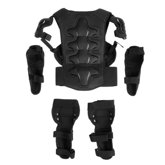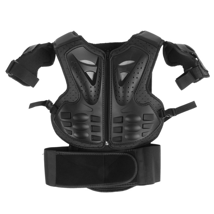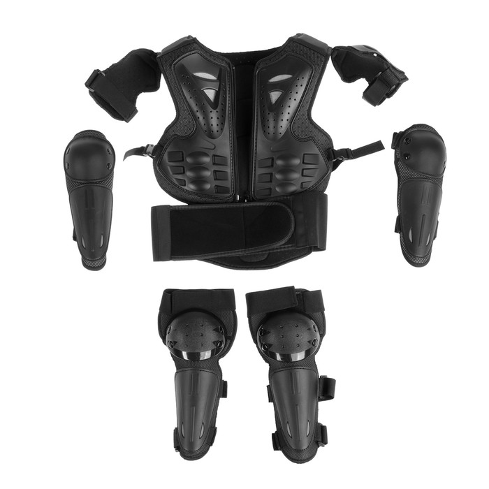 Съемный плечевой и локтевой панцирь из рыбьего фосфора разработан из высокопрочного износостойкого нейлонового материала. Передняя вентиляционная сетка, толстые подушечки на обоих стороны талии, можно использовать для защиты важных частей, таких как плечи, локти, грудь, спина, талия и другие важные части во время езды. Комплект детской брони подходит для детей от 5 до 12 лет.