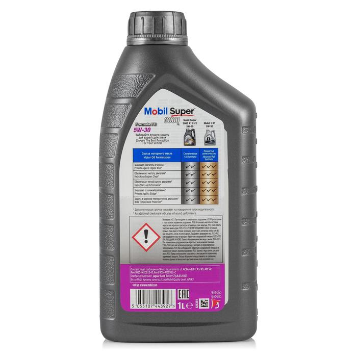 Mobil Super 3000 X1 Formula FE 5W-30 представляет собой моторное масло с высокими эксплуатационными характеристиками, разработанное для бензиновых и дизельных двигателей, рассчитанных на применение моторных масел низкой вязкости при высокой температуре и высокой скорости сдвига (HTHS). Оно также соответствует требованиям новой спецификации Ford WSS-M2C913-C.