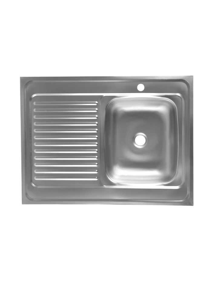 Накладная кухонная мойка с правой чашей и левым крылом, размер 80×60 см, глубина 16 см, из нержавеющей стали — модель для установки на тумбу. Мойка имеет одну чашу, расположенную справа, и левое крыло для сушки посуды или размещения принадлежностей. Изготовлена из нержавеющей стали толщиной 0.4 мм с матовой поверхностью. Сифон приобретается отдельно.