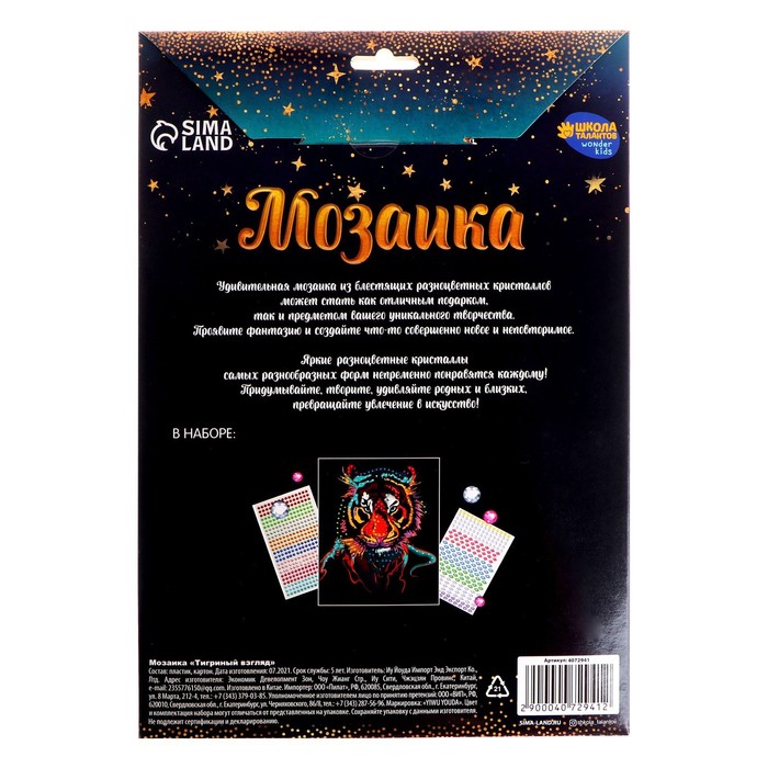 Мозаика стразами «Тигриный взгляд». Набор для творчества - яркая картина своими руками!