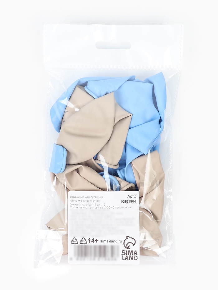 МП Воздушный шар латексный 12" «Весь мир в твоих руках», бежевый, голубой, 12 шт. 10900187