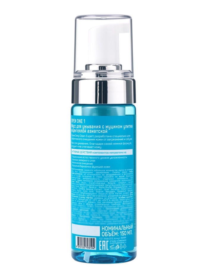Мусс для умывания Open One 1, с муцином улитки и центеллой азиатской, 150 мл