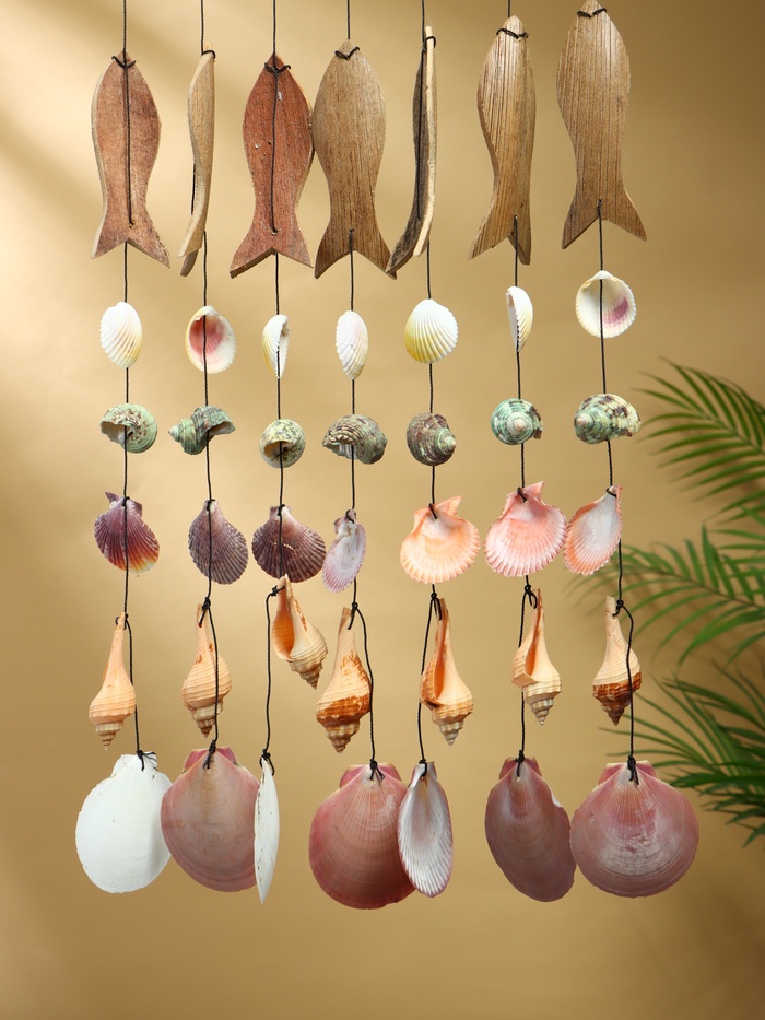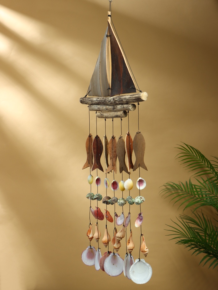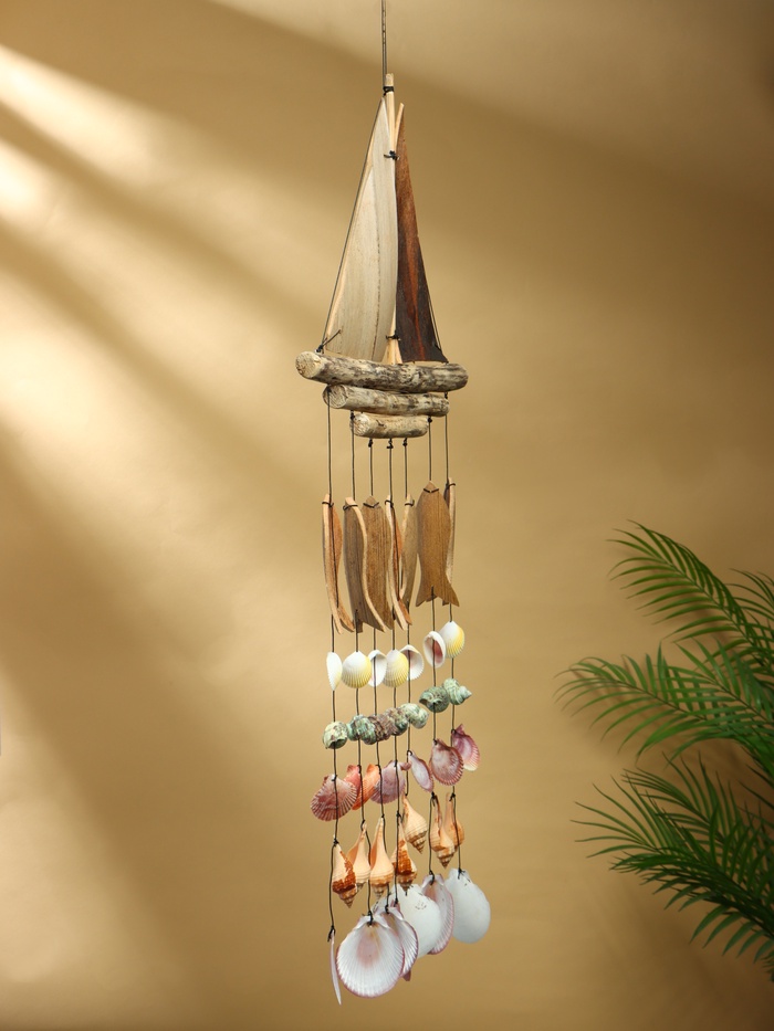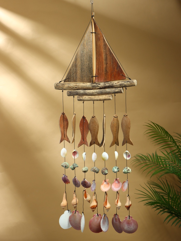 Муызка ветра «Рыбацкое судно», 35×3×103 см, дерево, ракушка
