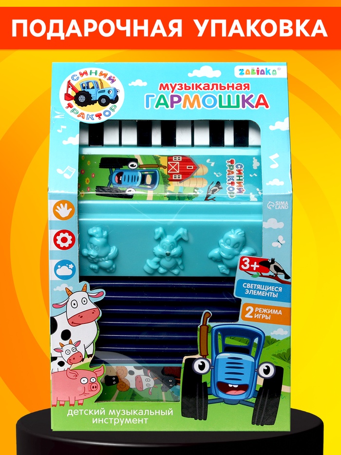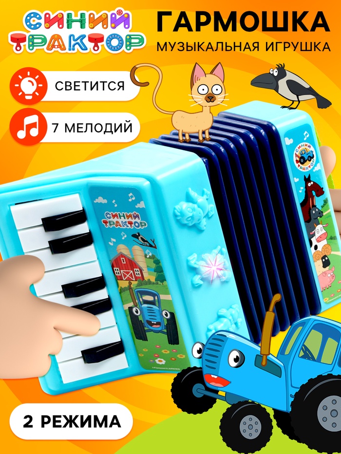 Музыкальная гармошка «Синий трактор» станет отличным подарком на день рождения, Новый год или любой другой праздник. Гармонь подойдёт как первым шагом в мир музыки, так и просто для весёлых игр.