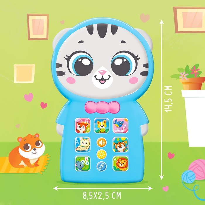 Музыкальный телефончик «Любимый котик» привлечёт внимание трогательным дизайном и надолго займёт малыша благодаря множеству полезных функций. Игрушка не только развлечёт ребёнка — с ней можно осваивать новые навыки!