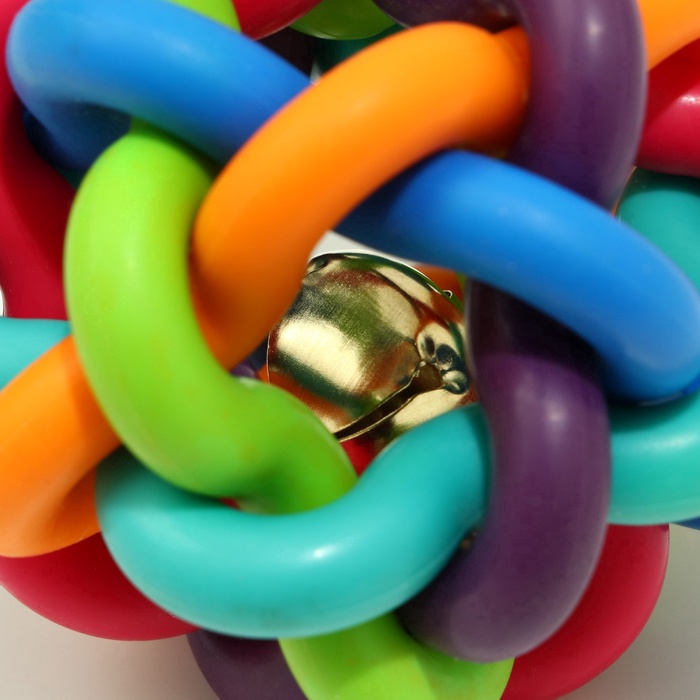 - Звонкий бубенчик внутри: При движении мяч издает негромкий, приятный звук. Он стимулирует слуховое внимание ребенка, побуждает его ползать, тянуться и активно познавать окружающее пространство.