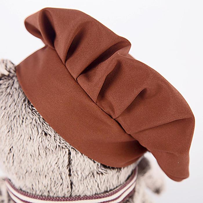 - В комплект входит объёмный колпак из смесовой ткани кофейного цвета, а также галстук бабочка шоколадного цвета из шелковистого сатина.