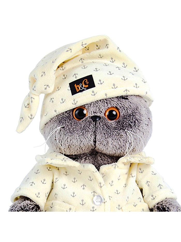 Игрушка сделана из искусственного меха, плотно набита полимерным волокном. Поэтому Басик не вызывает аллергии, не линяет, не точит когти о диван и принимает забавную позу, если его посадить. А умная мордочка будет всегда поднимать настроение его владельцам.