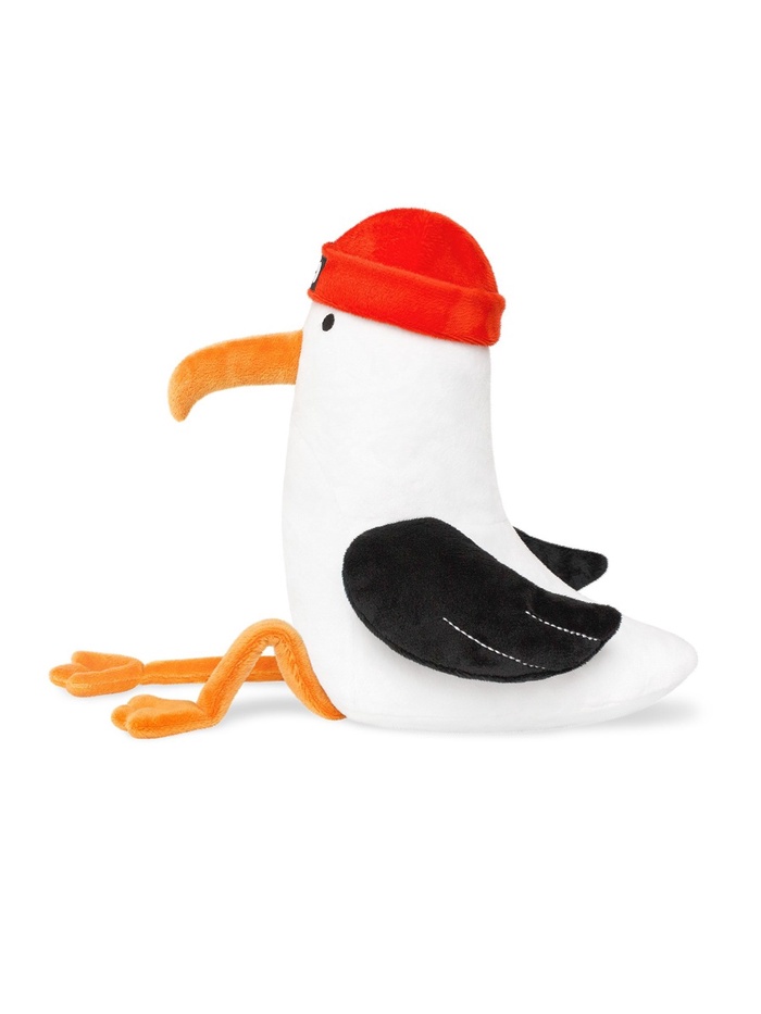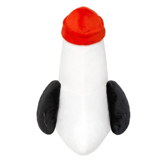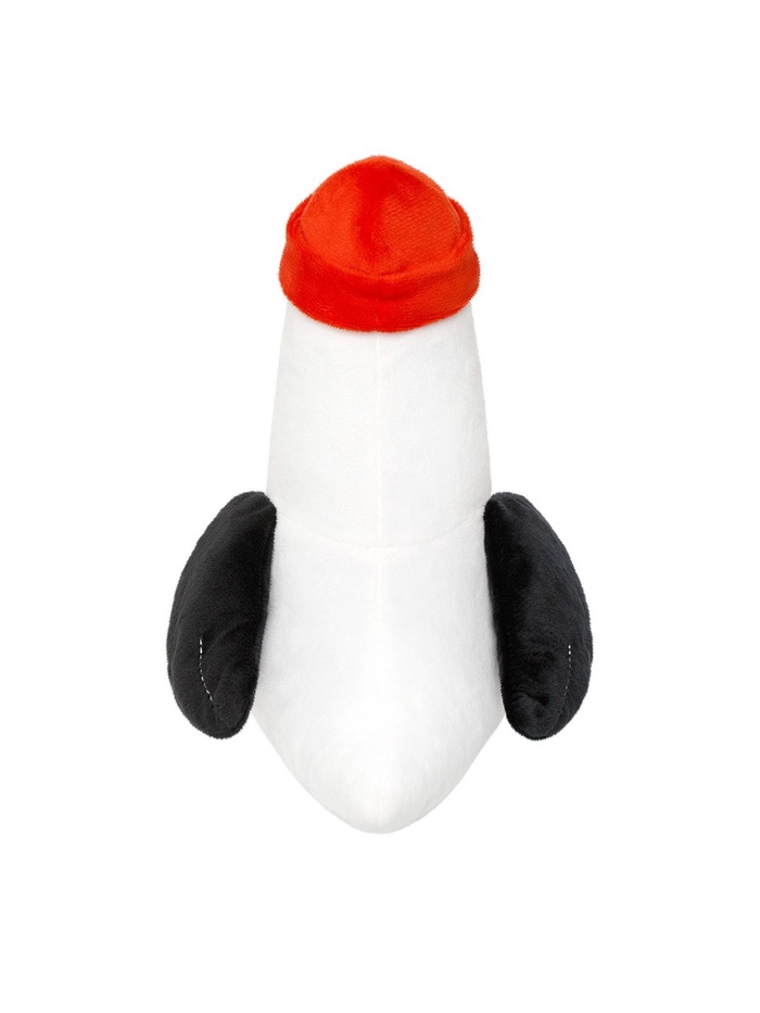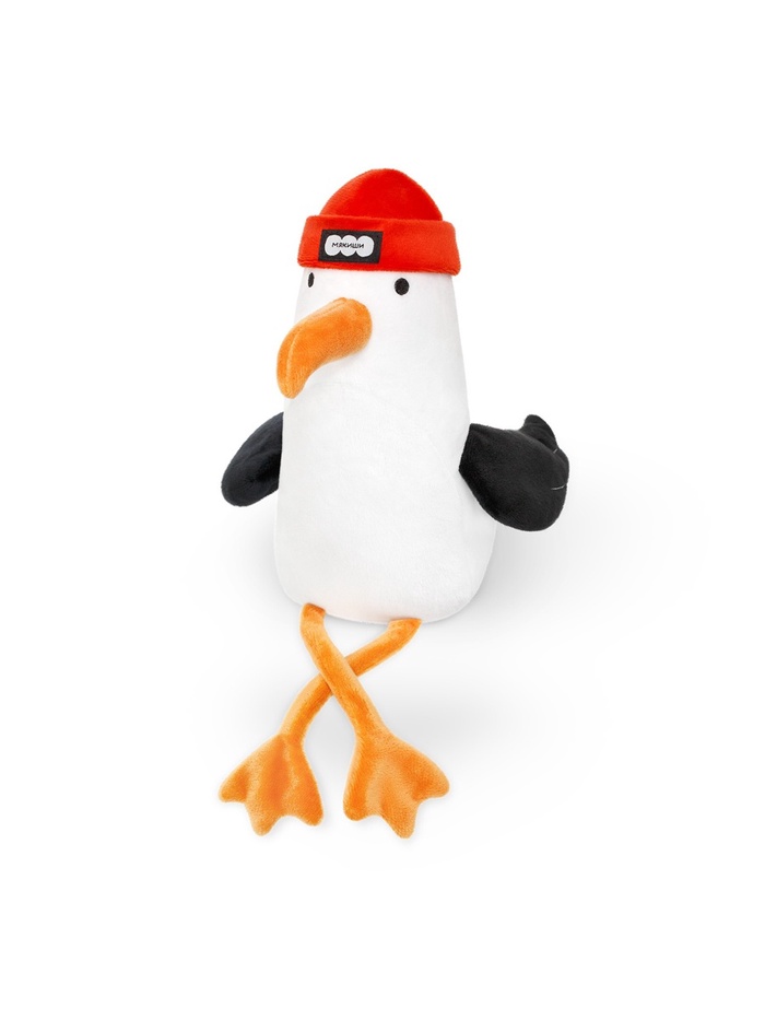 - Игрушка выполнена в виде очаровательной чайки с мягкой текстурой искусственного меха и наполнителем из синтепона.