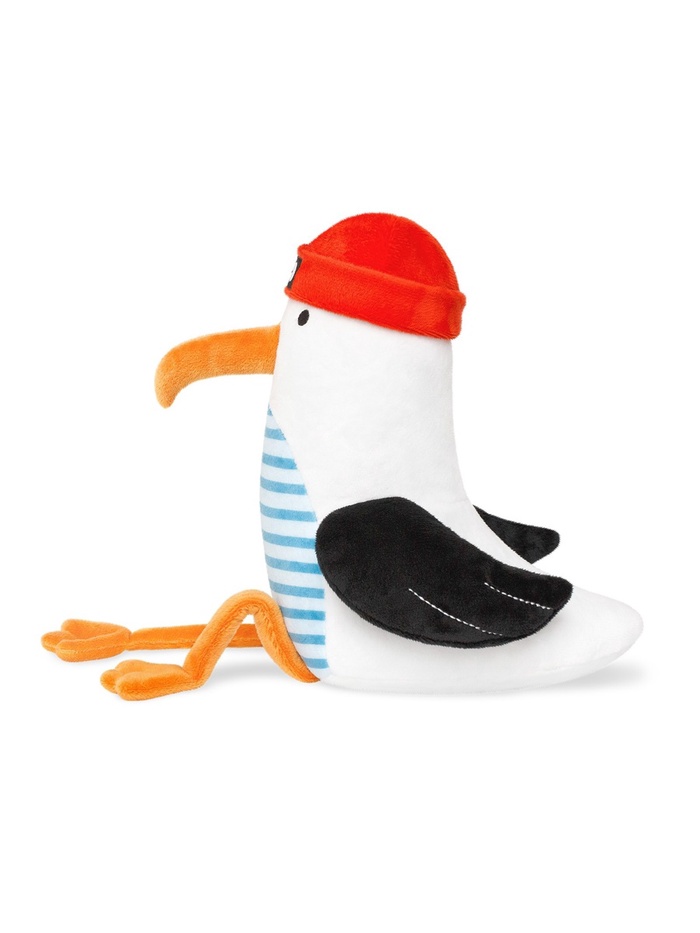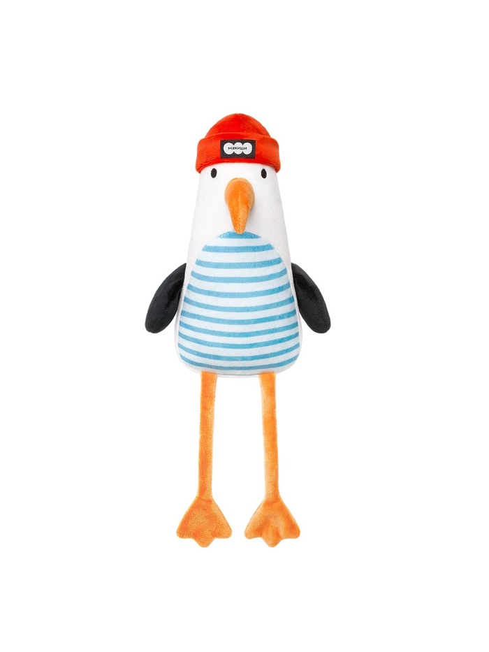 - Игрушка выполнена в виде очаровательной чайки с мягкой текстурой искусственного меха и наполнителем из синтепона.