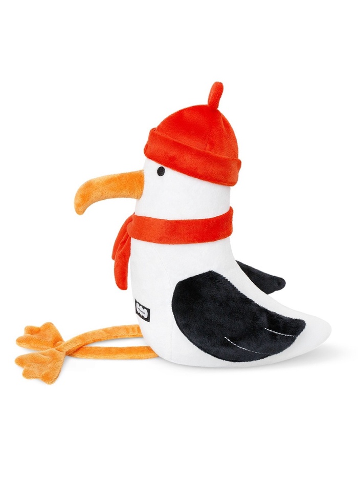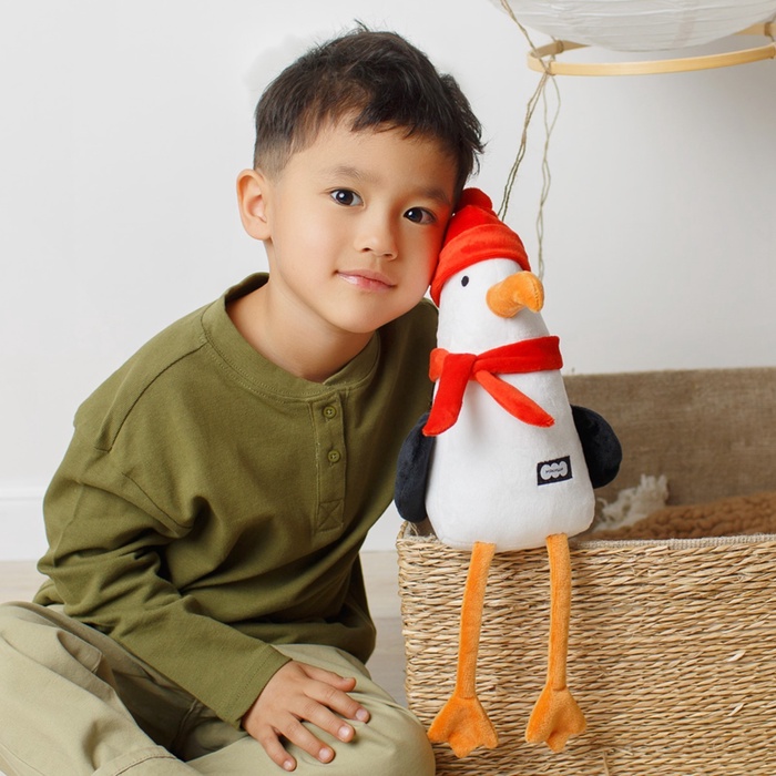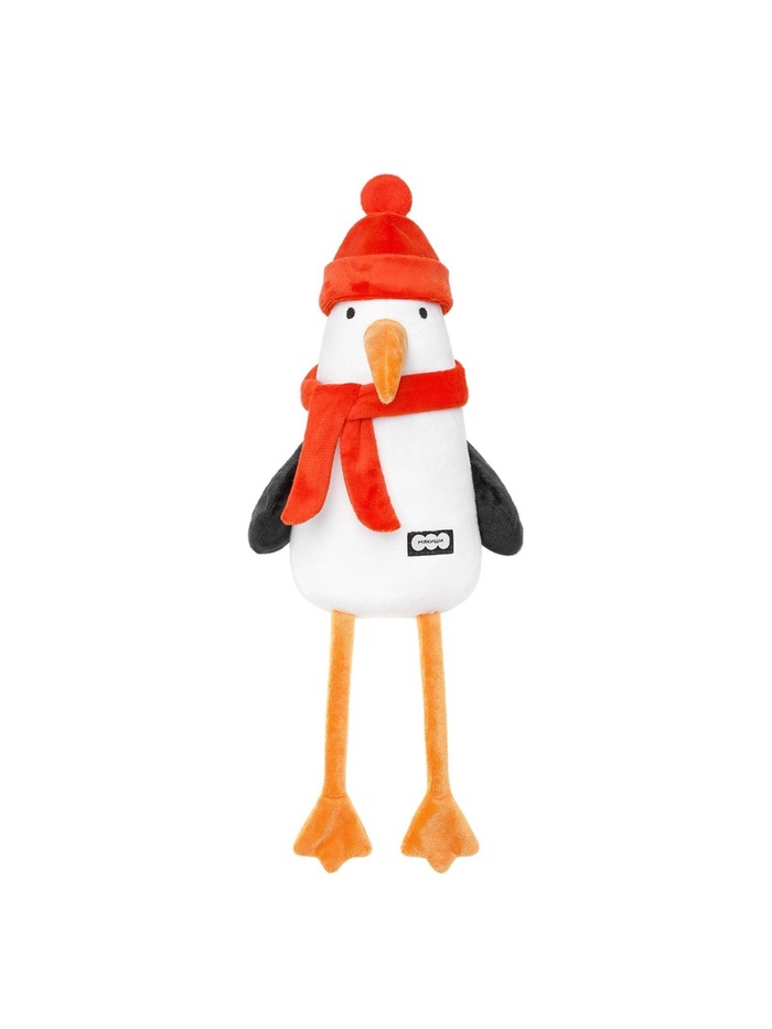 - Игрушка выполнена в виде очаровательной чайки с мягкой текстурой искусственного меха и наполнителем из синтепона.