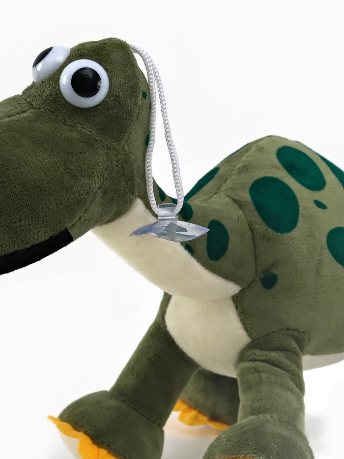 Дино уверенно стоит на лапках, его удобно держать, переносить и использовать в активных игровых сценах. Мягкий плюш приятен на ощупь, а компактный размер делает игрушку удобной для детских рук.