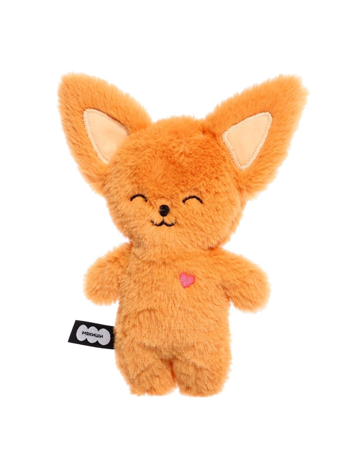 - Игрушка выполнена в виде милой лисицы фенека с мягким искусственным мехом и наполнителем из синтепона.
