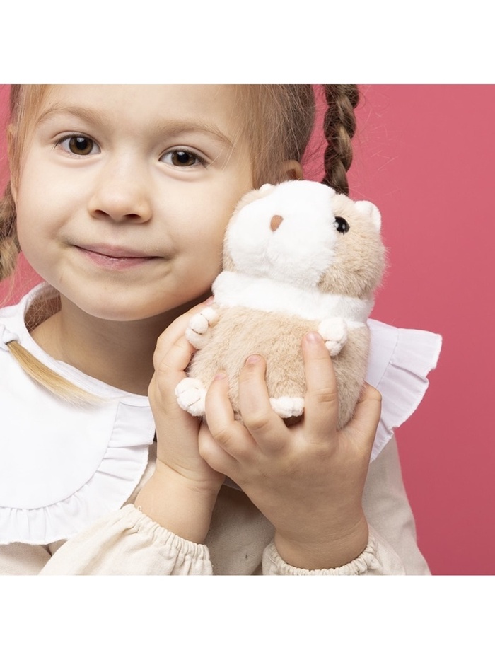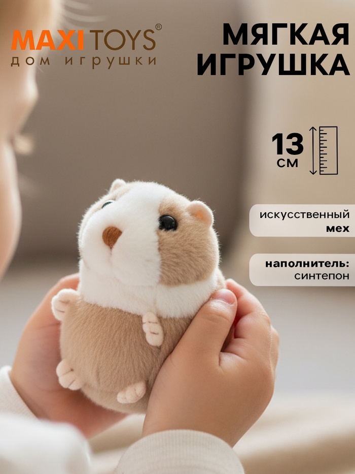 - Игрушка выполнена в виде милого хомячка с мягким и приятным на ощупь материалом.