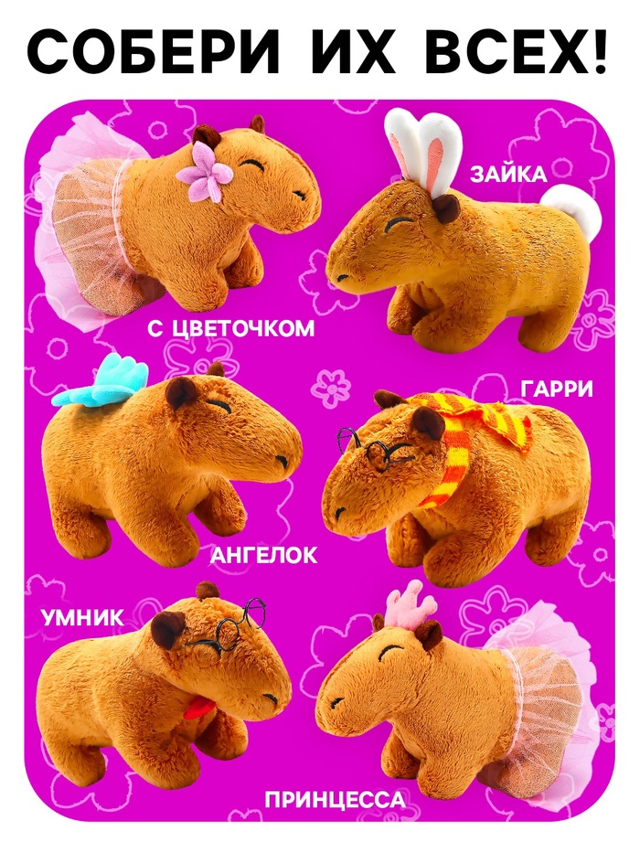 Капибара с цветочком — это самый крупный грызун в современном мире. Благодаря своему забавному внешнему виду он приобрёл популярность среди детей и взрослых. Мягкая игрушка в виде капибары станет отличным другом для вашего малыша.