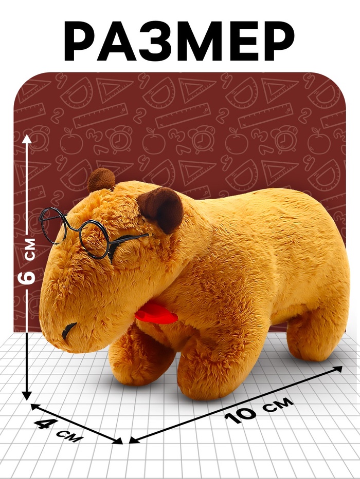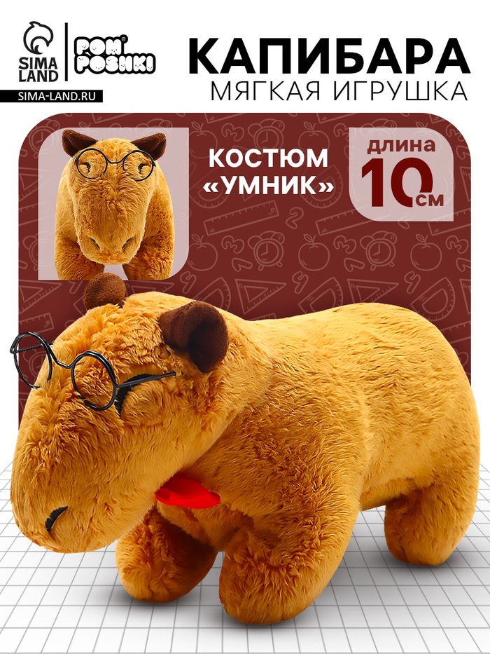 Мягкая капибара с очками и бабочкой станет милым другом для вашего ребёнка. Благодаря своему внешнему виду капибара приобрела популярность среди детей и взрослых. Этот зверёк — самый крупный грызун в современном мире.
