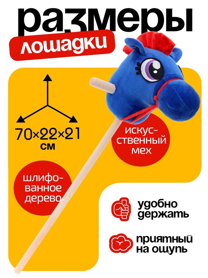 - Игрушка имеет удобную ручку для захвата. Размер лошадки 70 см.