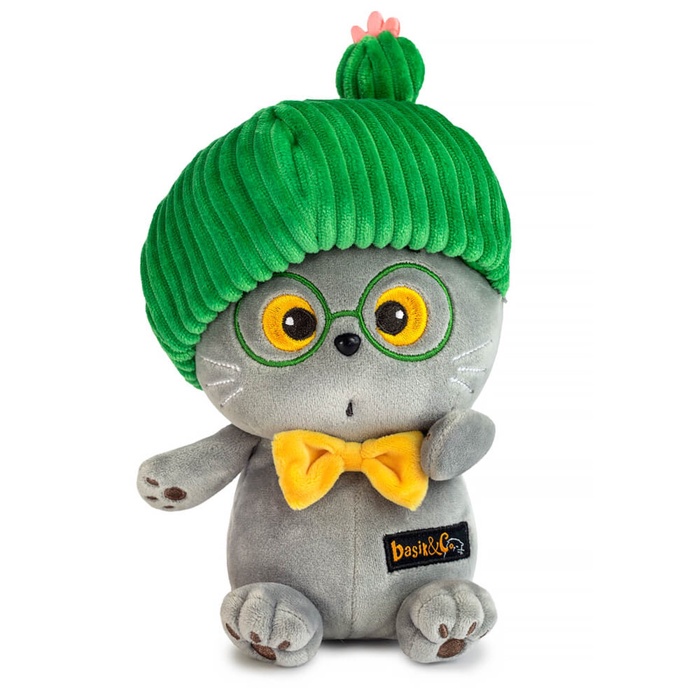 Серый котёнок «Басик» в шапочке кактуса — это очаровательный персонаж, который станет идеальным подарком для детей и взрослых. Его милый внешний вид и съёмный аксессуар делают его универсальным выбором для игр, украшения интерьера или как символический жест заботы.