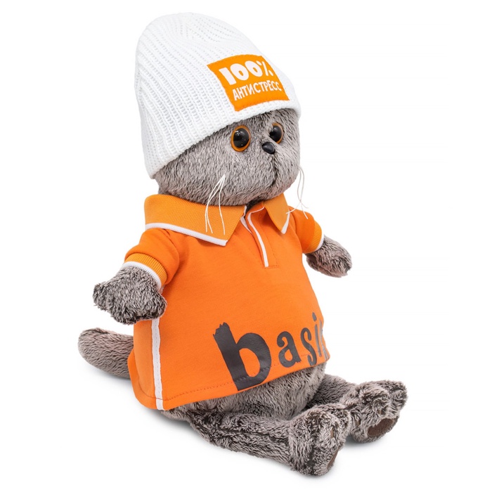 Маленький «Кот Басик» в в поло и шапке — это очаровательная мягкая игрушка, которая станет идеальным подарком для близкого человека или стильным аксессуаром для дома. Его размер и дизайн делают его заметным элементом интерьера или удобным компаньоном для игр.