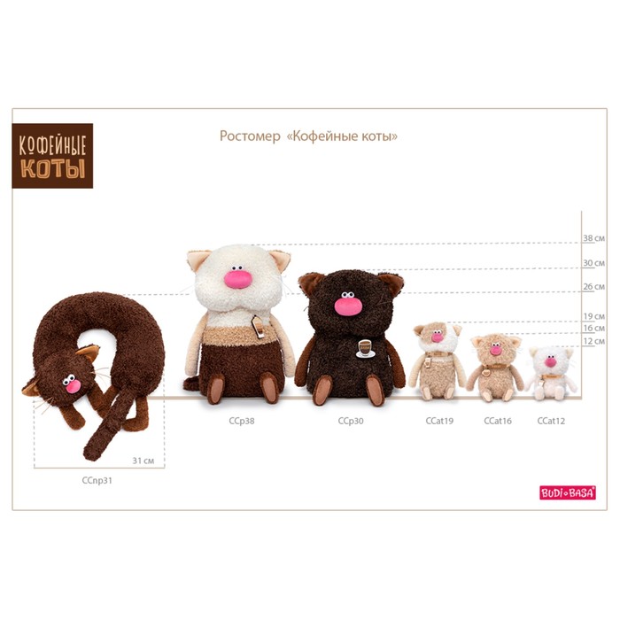 Мягкий «Кот Мокко» — это очаровательный персонаж, который станет идеальным другом для вашего ребёнка. Его размер и брошка с напитком делают его универсальным выбором для игр, украшения комнаты или как стильного подарка. Мягкий искусственный мех и наполнитель из синтепона обеспечивают комфорт и безопасность.