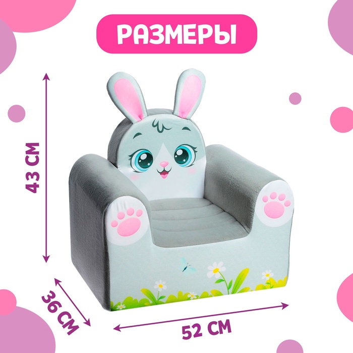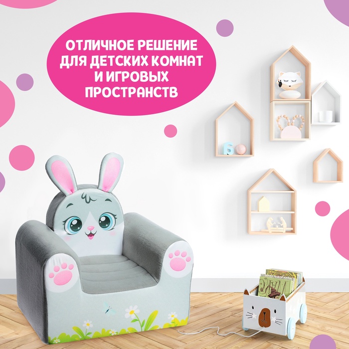 Мягкая игрушка-кресло послужит функциональным украшением для детской комнаты. Яркий дизайн привлечёт внимание ребёнка. Удобное мягкое кресло подходит для чтения книг, игр и просмотра мультиков.