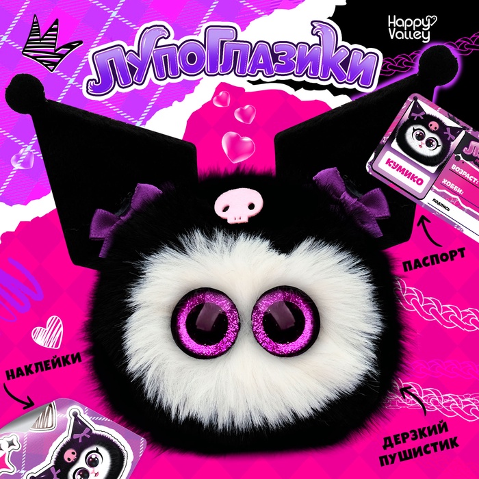 Знакомьтесь — это Кумико. Мягкий зверёк из серии «Лупоглазики» станет верным спутником в играх или уютным украшением детской комнаты. В набор вместе с ней входят аксессуары, с которыми играть будет ещё интереснее.