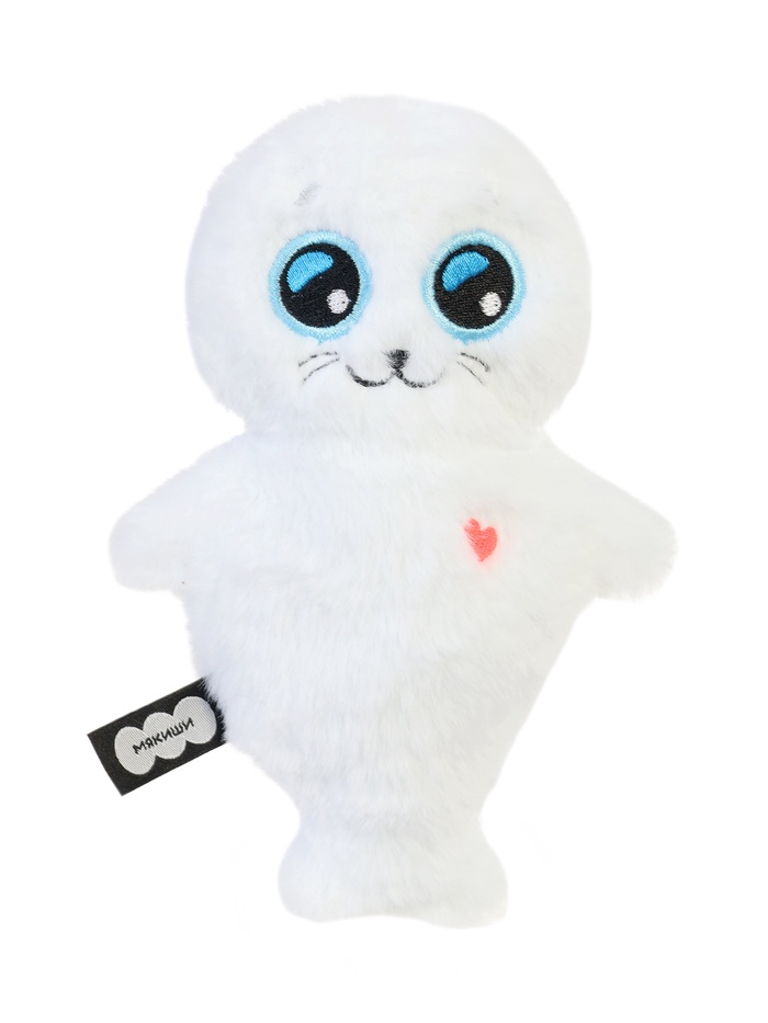 Милая белая нерпа Белоснежка — это очаровательный компаньон, который станет идеальным подарком для ребёнка или стильным аксессуаром в интерьере. Её дружелюбный образ с вышитым сердечком на груди создаёт атмосферу тепла и уюта, подходящую для игр, украшения дома или как символический подарок.