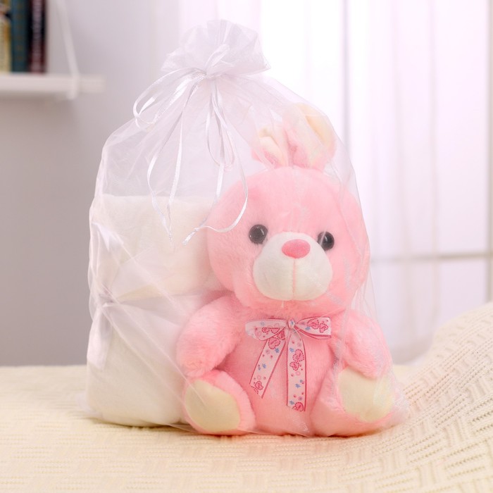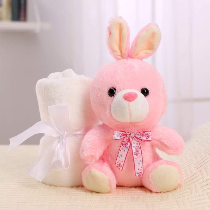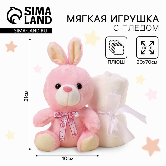 - В комплекте — очаровательная игрушка-кролик и удобный плед, идеально подходящий для отдыха или игр.