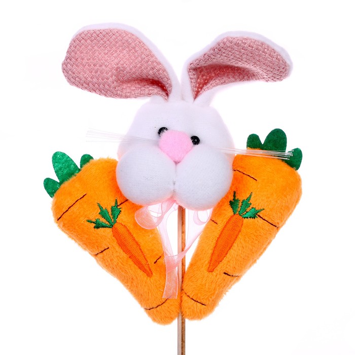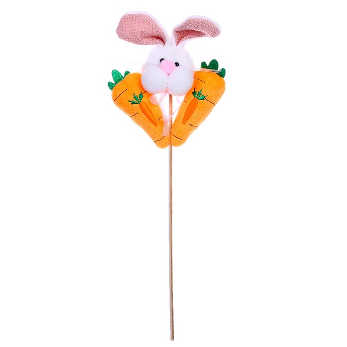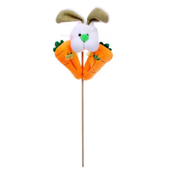 - Декор выполнен в виде милого кролика на деревянной палочке, что добавляет ему игривости и шарма.