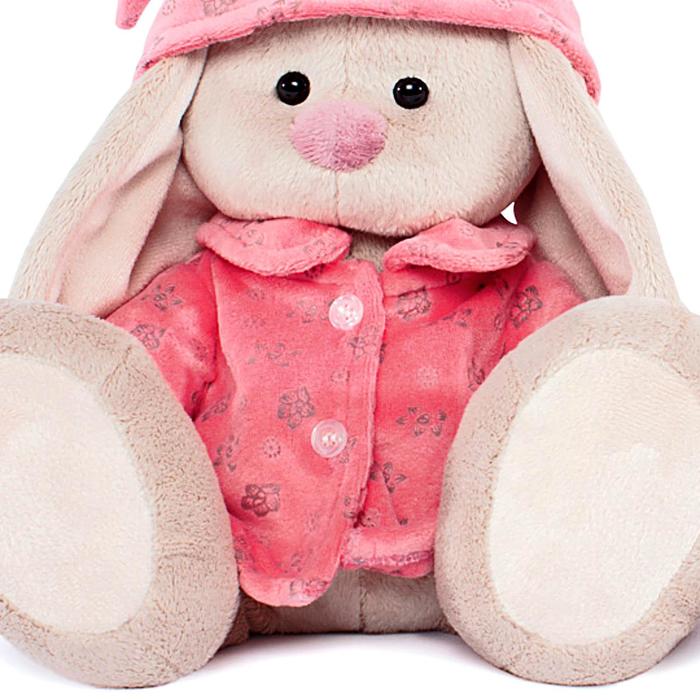 - Розовая пижама и ночной колпачок придают игрушке уютный «сонный» образ.
