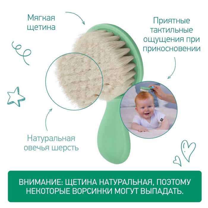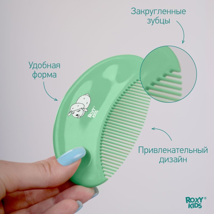 Расческа-щетка с мягким ворсом из натуральной овечьей шерсти и удобный гребешок ROXY-KIDS предназначены для малышей и новорожденных. Мягкая пушистая щетка имеет удобную эргономичную ручку, улучшает кровообращение кожи головы, не царапая её. Нежный массаж расслабляет и успокаивает перед сном, а стимуляция волосяных луковиц ускоряет рост первых волос малыша. Натуральная щетка из овчины позволит пригладить волосики и придать им аккуратный вид. А с помощью гребешка с частыми закругленными зубчиками удобно расчесывать запутавшиеся и скатавшиеся волосы. Набор для расчесывания ROXY-KIDS отличает приятный дизайн, прочность и экологичность материалов. Гребешок и расческа-щетка отлично дополняют друг друга, и в дальнейшем с их помощью вы сможете научить ребенка причесываться самостоятельно.