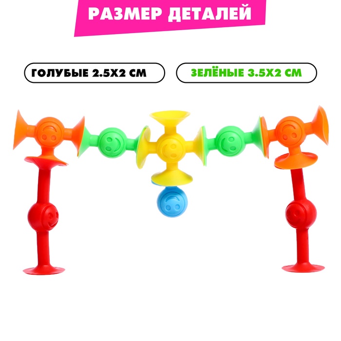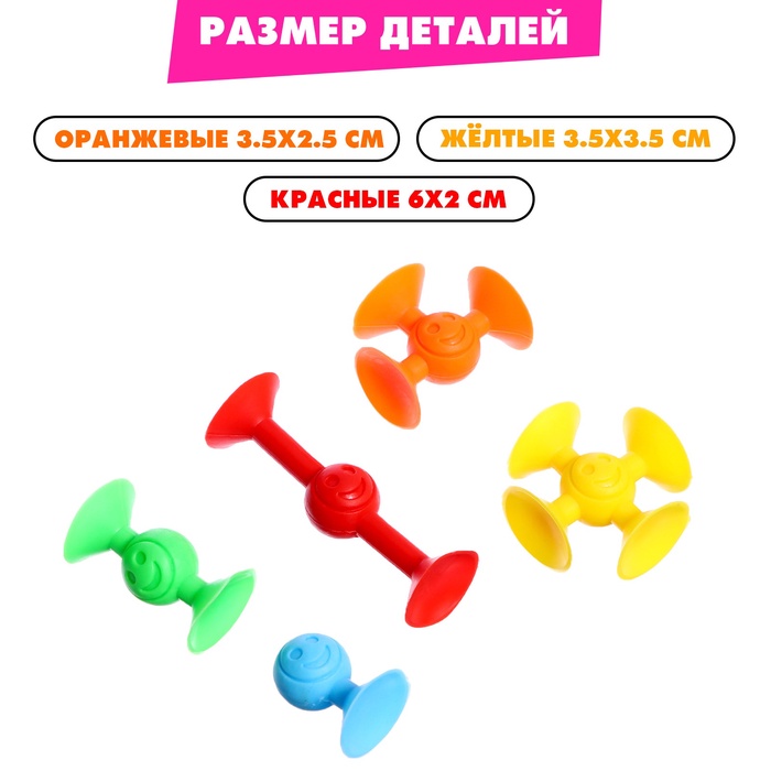 Создавай и играй с мягкими деталями! Конструктор «Весёлые присоски» – это уникальный набор для самых маленьких. Мягкие и безопасные элементы открывают простор для творчества и развивают воображение ребенка.