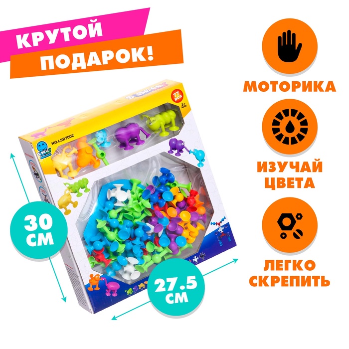 Идеальный подарок для малышей: Набор «Забавные присоски» подойдет для детей от 3 лет. Это отличный способ познакомить ребенка с миром конструирования в безопасной и увлекательной форме. Подарите малышу радость творчества и игры!