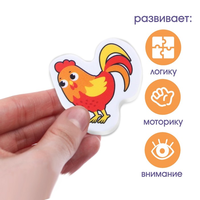 Развивающая игра направлена на тренировку воображения и внимания, развитиемоторики и координации, а также визуального и тактильного восприятия малыша. Благодаря занятиям в игровой форме ваш ребёнок с лёгкостью научится считать‚называть составлять слова, а так же учить алфавит/животных/окружающий мир.