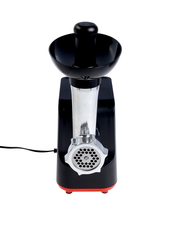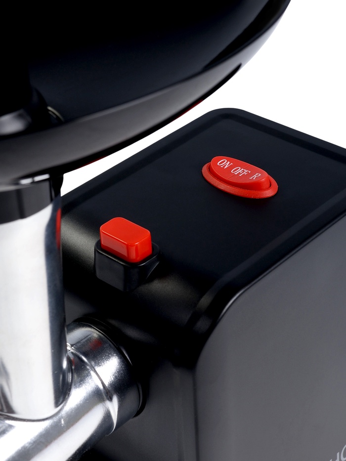 Устройство оборудовано двумя металлическими перфорированными дисками, ножом из нержавеющей стали и системой реверса — всё это обеспечивает качественное измельчение ингредиентов и защиту от заклинивания. За минуту вы сможете переработать до 1,5 кг продукта, что подходит даже для больших семей.