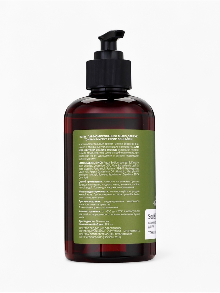 Средство для бережного очищения рук с притягательным ароматом тонки и мускуса, обеспечивающее увлажнение и питание кожи.