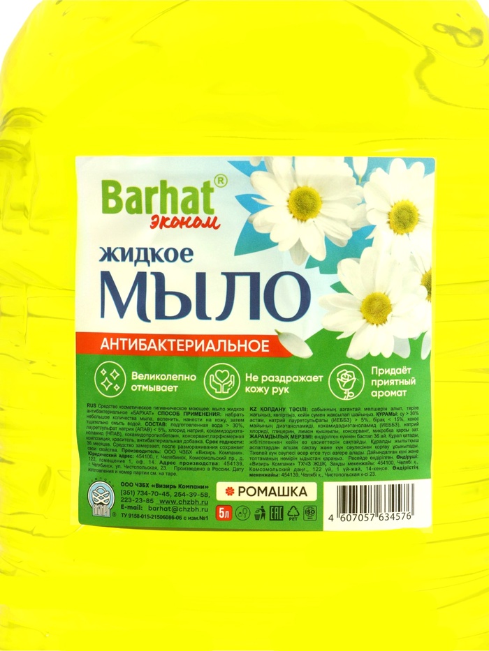 Мыло жидкое Бархат с антибактериальным эффектом Ромашка, 5 л
