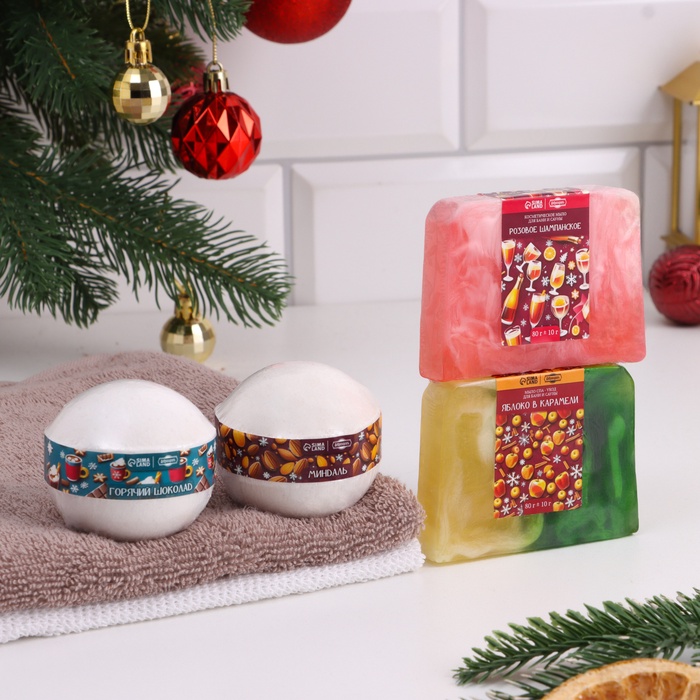 Набор 2 бомбочки "Миндаль, Горячий шоколад" и 2 мыла "Розовое шампанское, Яблоко в карамели" 1064326