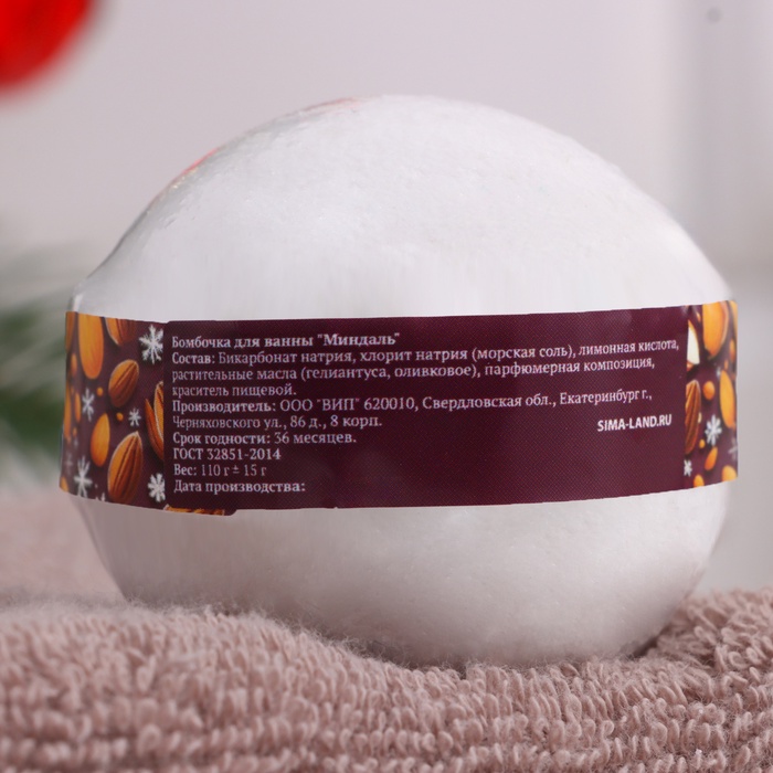 - Бомбочка для ванны "Миндаль" – Аромат миндаля приносит тепло и уют, а мягкие компоненты увлажняют кожу, делая её бархатной и мягкой.