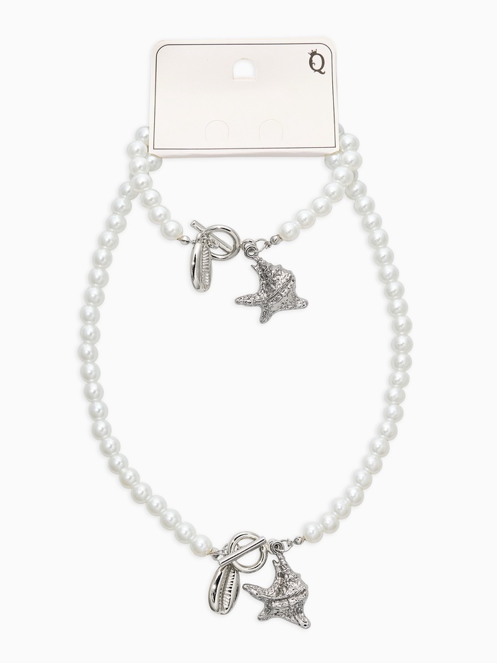 Набор 2 пред-та: бусы.браслет "Жемчуг", звезда, цвет белый в серебре L=18/42см №6