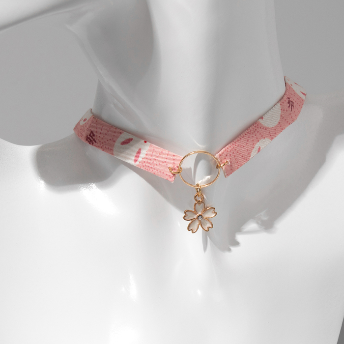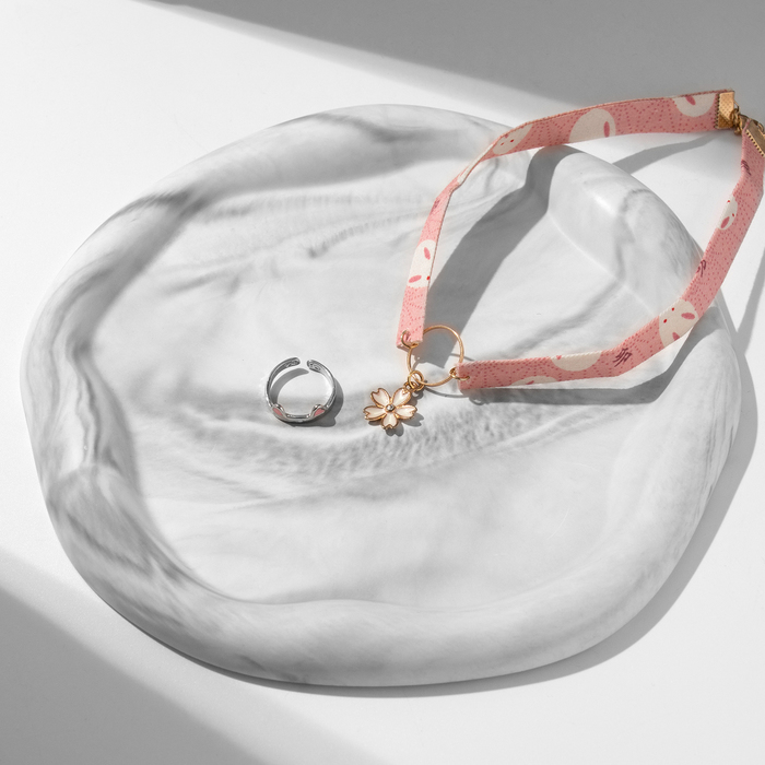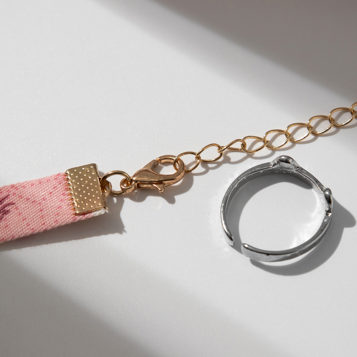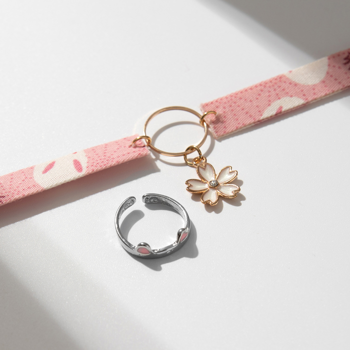 Набор 2 предмета: кольцо, чокер «Япония» милый, цвет бело-розовый в серебристо-золотом металле, 30 см
