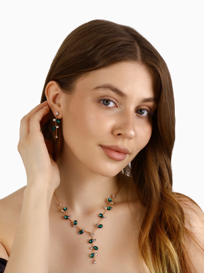 Набор из двух предметов: серьги и колье со стразами — это элегантный аксессуар с уникальным дизайном, который добавит сияния вашему образу. Этот комплект идеально подойдет для любого мероприятия, подчеркивая утонченность и стиль. Серьги и колье можно носить вместе или раздельно, дополняя образы для любого случая.