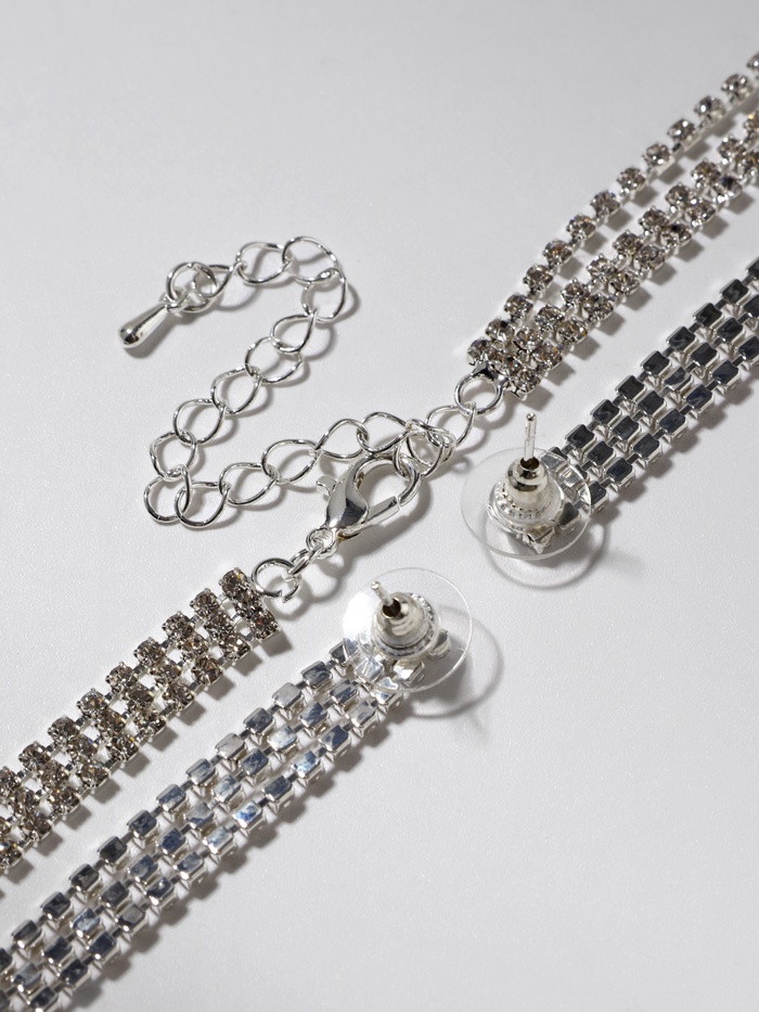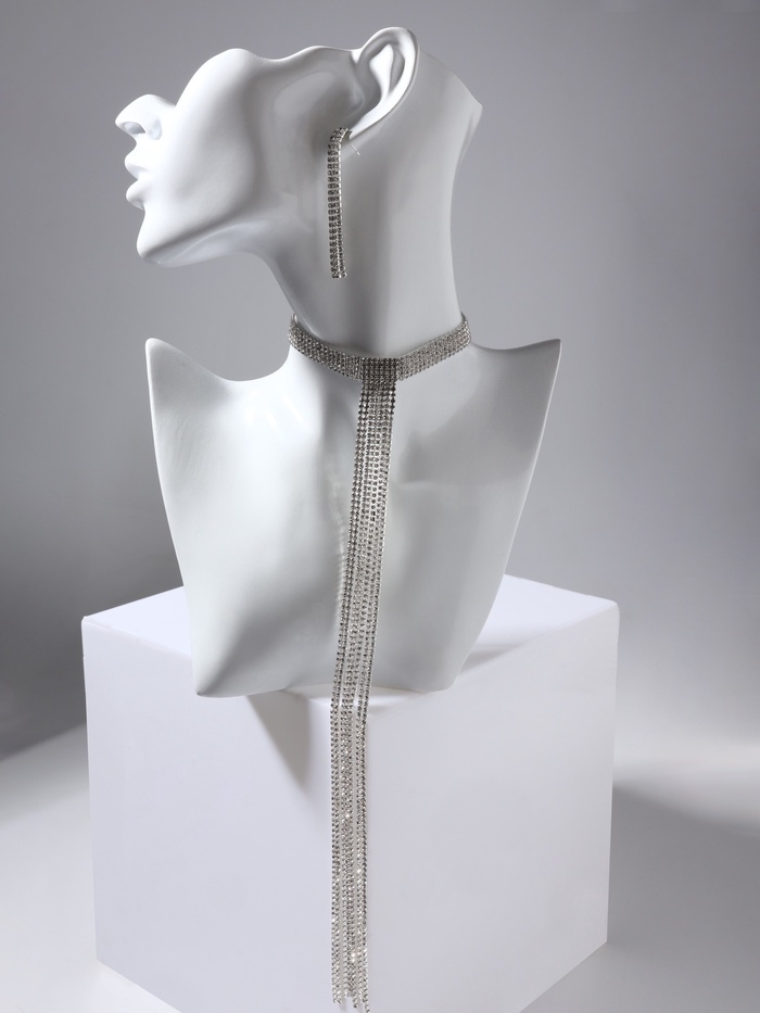 Набор из двух предметов: серьги и колье со стразами — это элегантный аксессуар с уникальным дизайном, который добавит сияния вашему образу. Этот комплект идеально подойдет для любого мероприятия, подчеркивая утонченность и стиль. Серьги и колье можно носить вместе или раздельно, дополняя образы для любого случая.