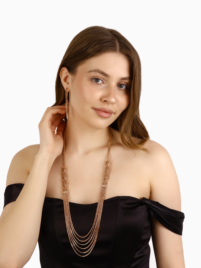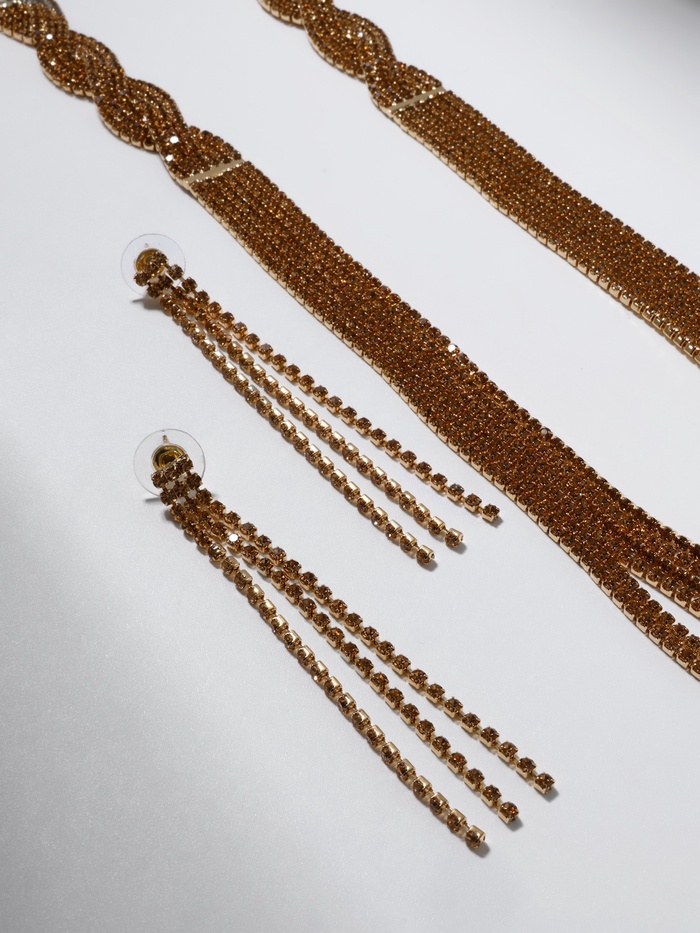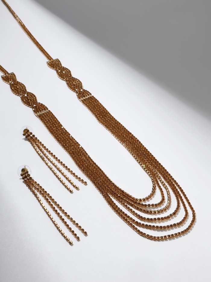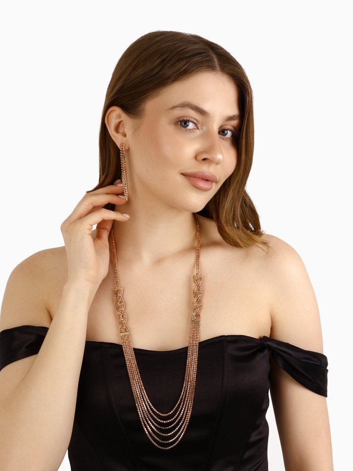 Набор 2 предмета: серьги, колье «Лёд» косичка, цвет золото, 80 см