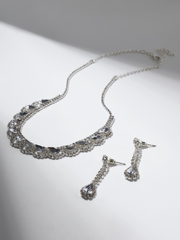 Набор из двух предметов: серьги и колье со стразами — это элегантный аксессуар с уникальным дизайном, который добавит сияния вашему образу. Этот комплект идеально подойдет для любого мероприятия, подчеркивая утонченность и стиль. Серьги и колье можно носить вместе или раздельно, дополняя образы для любого случая.