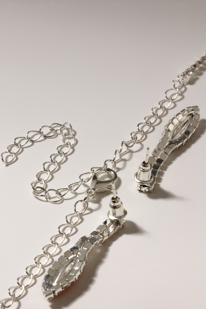 Набор из двух предметов: серьги и колье со стразами — это элегантный аксессуар с уникальным дизайном, который добавит сияния вашему образу. Этот комплект идеально подойдет для любого мероприятия, подчеркивая утонченность и стиль. Серьги и колье можно носить вместе или раздельно, дополняя образы для любого случая.