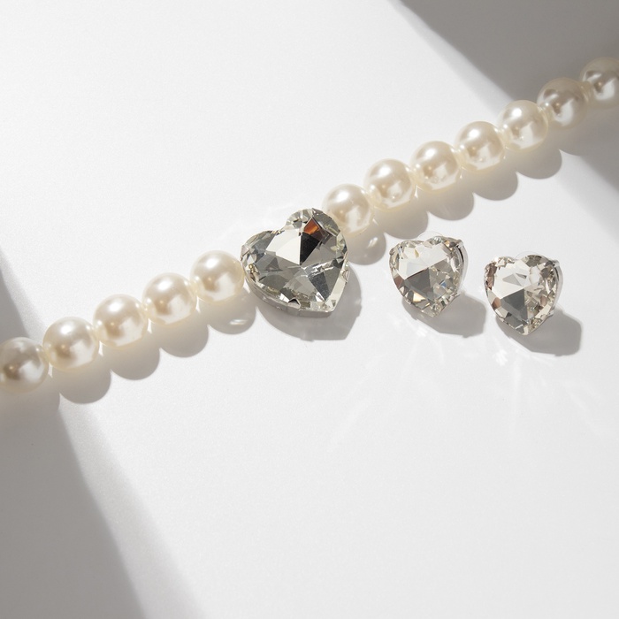 Откройте для себя мир изысканности и утончённости с великолепным набором, который включает серьги и колье в форме сердца. Этот комплект, выполненный из белого жемчуга и обрамлённый серебристой фурнитурой, станет идеальным дополнением к любому наряду и подчеркнёт вашу женственность.