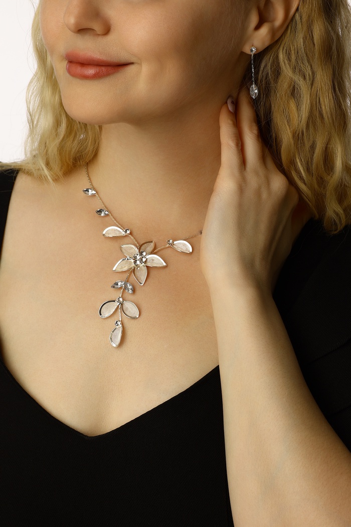 Набор из двух предметов: серьги и колье со стразами — это элегантный аксессуар с уникальным дизайном, который добавит сияния вашему образу. Этот комплект идеально подойдет для любого мероприятия, подчеркивая утонченность и стиль. Серьги и колье можно носить вместе или раздельно, дополняя образы для любого случая.