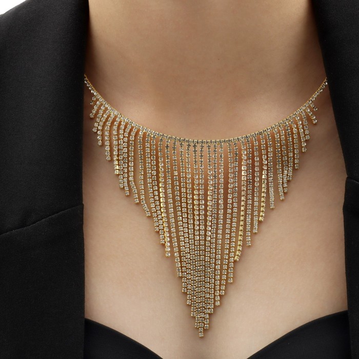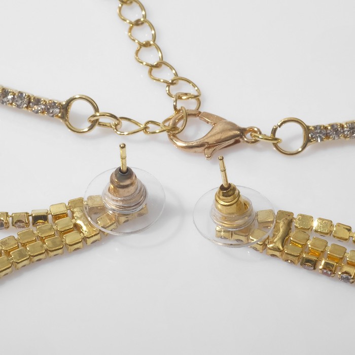 Набор 2 предмета: серьги, колье «Водопад» кольцо, белый в золоте, d=13 см